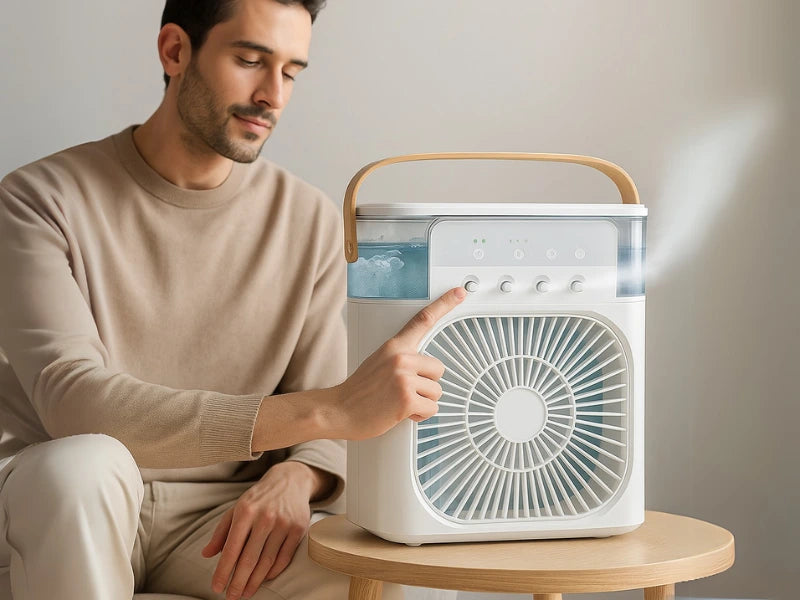 Beat the heat in style with this all-in-one Mini Mist Fan Cooler!